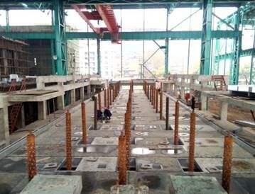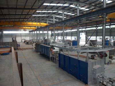 臺車式退火爐鋼 結(jié)構(gòu)主要包括爐殼支撐框架和驅(qū)動設(shè)備支撐框架(平臺鋼結(jié)構(gòu))。考慮到爐殼潛在的熱脹冷縮因素,各段爐殼支撐框架與平臺鋼結(jié)構(gòu)采川相互獨(dú)立結(jié)構(gòu)。各爐段的底 輥室先安裝就位,以自己四角立柱為基準(zhǔn)完成4個(gè)基準(zhǔn)立柱焊接;再焊接左右兩個(gè)整體端板.而操作側(cè)和傳..